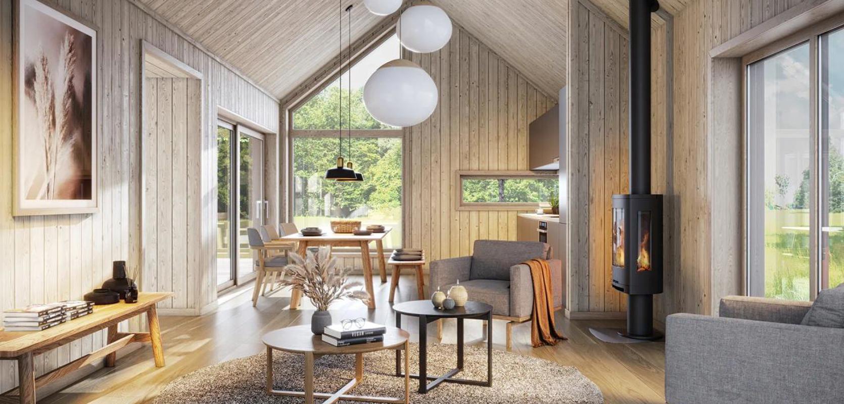 Ildsted som sentralt punkt:  Ildstedet er synlig fra mellomgangen, allrommet og uteplassen, noe som gir en følelse av samhørighet mellom disse områdene. Ildsteder er ikke bare praktiske varmekilder, men også estetisk tiltalende elementer som tilfører atmosfære og koselig stemning til rommet.